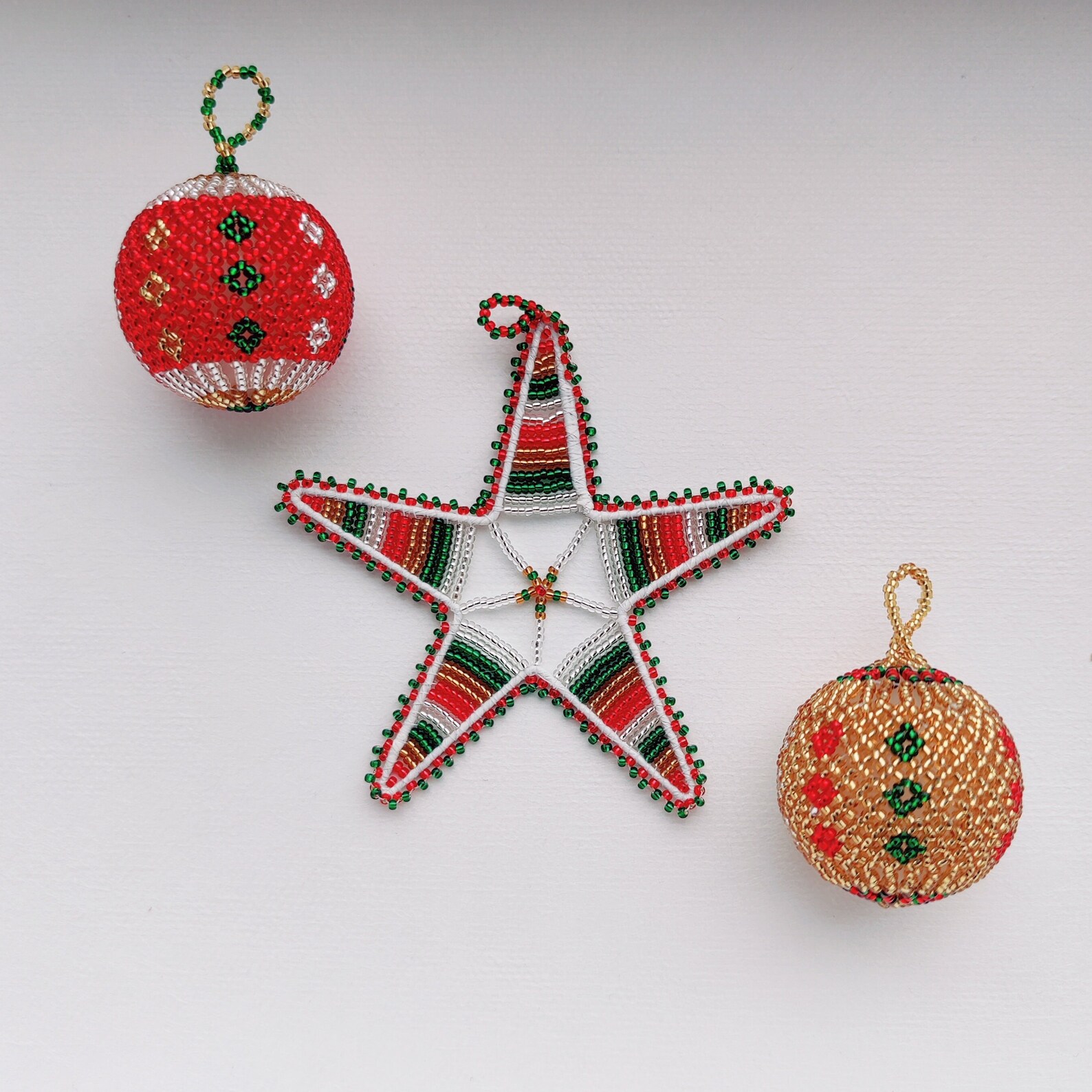 This set of 3 Christmass tree decorations is a worthy addition to your assorted haul. Made of beads and wire, the handmade decorations are a good gift idea for that special friend.