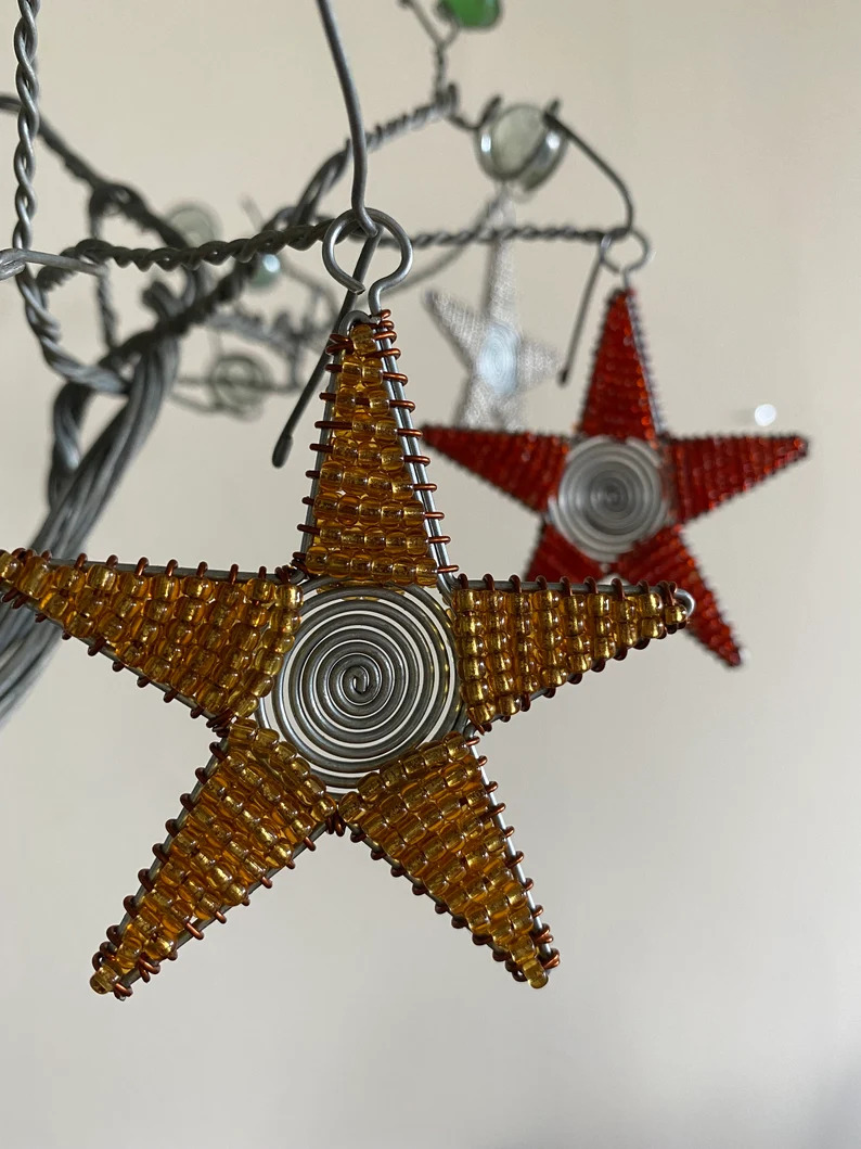 Made from wire and glass beads, these stars measure 10 cm in width, and are sold in pairs of two.
