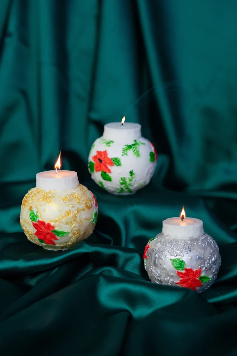 Brighten up your home with this set of 3, Christmas candles which also have a decorative touch. Made from soy wax.